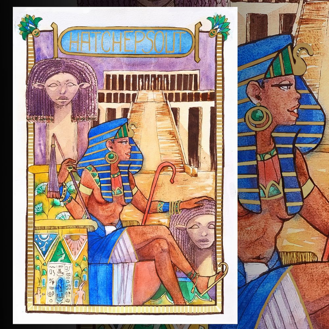 🎨 Illustration à l’aquarelle – Hatchepsout, La reine-pharaon qui défia les codes